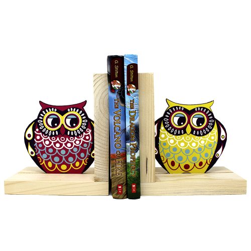 Wooden Bookend – Adjustable Book Stopper for Kids and Adults – Decorative and Functional Book Holder – Owl Design